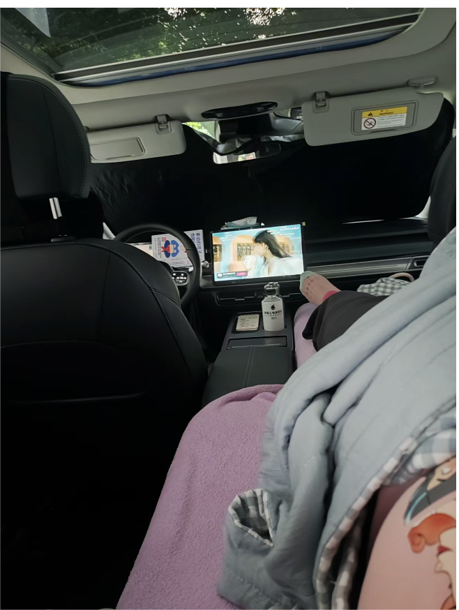加上YY星耀版的空间很大,座椅还能放倒,在车上午休也很舒服了。之前要么在外面散步消食,要么趴工位桌子上睡觉,但是办公室中午会有人进进出出,基本没几次能睡得舒坦得……买了车之后,车窗贴了隐私膜,前档买了遮阳伞,冷的时候在车上盖个小毯子也就挺暖和的,透过天窗还可以看看天空,就很惬意。我还买了天幕的遮光板,中午前档一遮,后视镜一叠,开个空调,座椅放平,也就可以享受**的午休了~