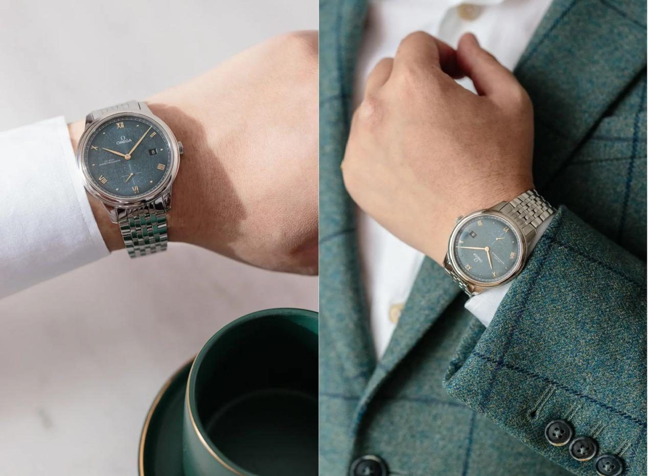 另一枚碟飞系列典雅41毫米男士手表也让人眼前一亮,松绿色PVD表盘深邃又吸睛,还采用欧米茄特有的双重表盘处理工艺,垂直纹理上叠加太阳射线的打磨效果,颜色质感在绿盘手表里都是独一份。