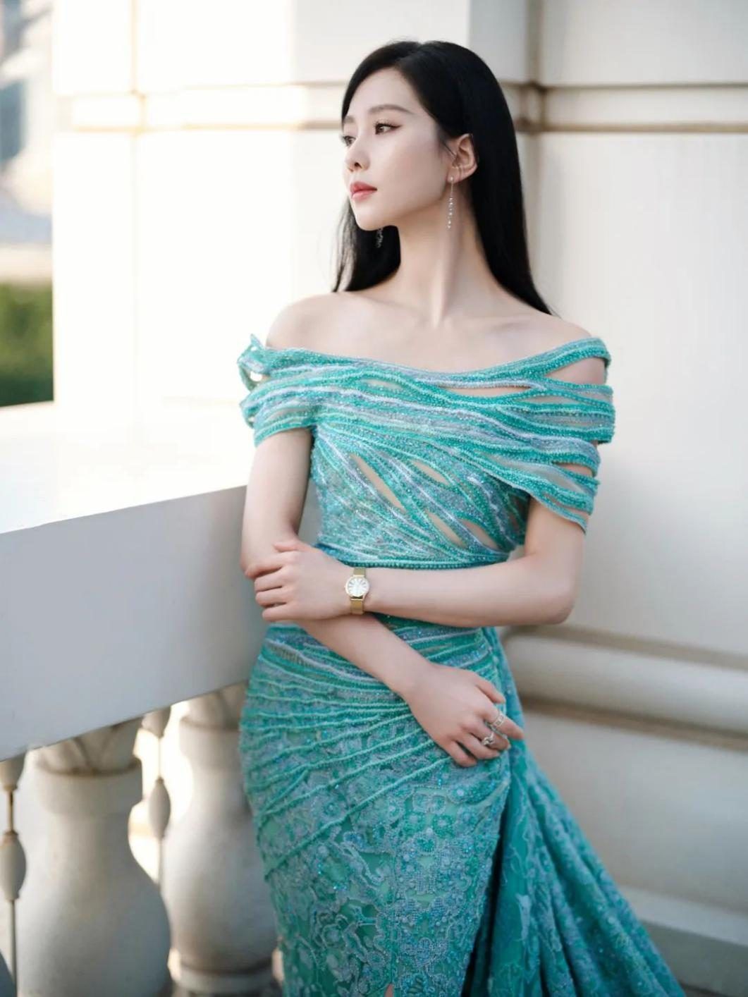 其实想要穿出节日感,也可以在配饰上做文章。像刘诗诗这身水蓝色礼服,就专门搭配了一枚金色的欧米茄碟飞系列MINI名典腕表,立刻起到画龙点睛的作用,光影在金色表壳和镶钻表圈**转,华丽得恰到好处。