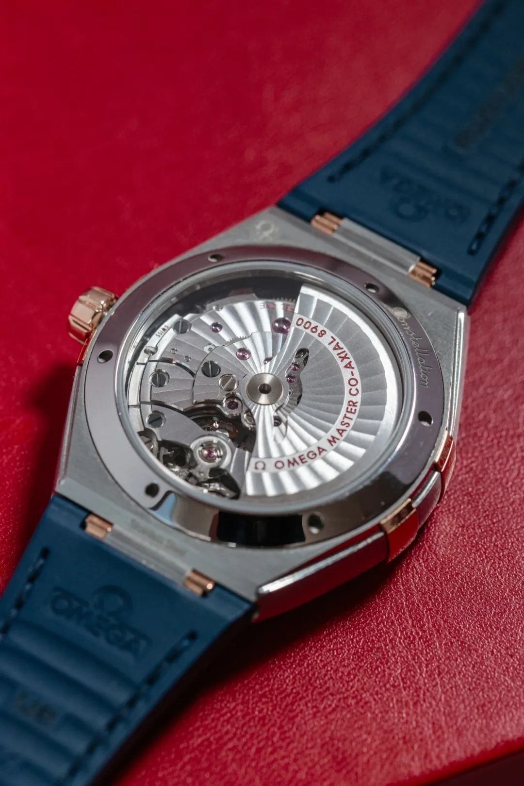 通过背透设计,可以看到手表内部的欧米茄8900**天文台机芯,各种精美打磨润饰一丝不苟。