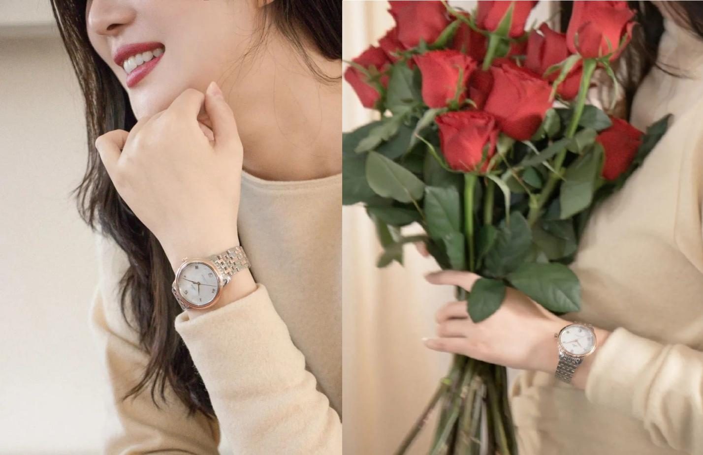 这只星座手表29 毫米的表盘非常适合手腕纤细的女生,经典优雅、耐看不挑年龄。6 点钟位置的日历窗口,也是好看又实用的功能。很喜欢纤细的镂空叶形指针,让整个表盘一下子更有灵气。