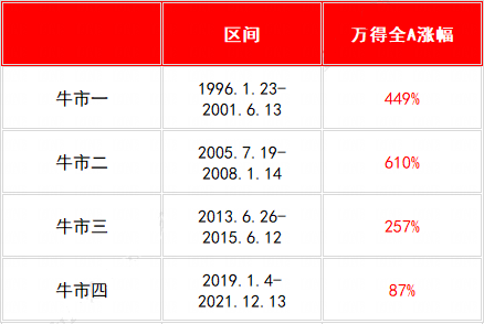 2019年1月,又一轮牛市开启。万得全A指数从3170点一路上涨至2021年12月13日的6028点。