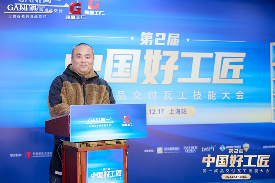 在开幕致辞中,家装公司代表张九兵 向参赛的金牌瓦工献上了诚挚的问候。他表示,美好家的实现离不开技艺精湛的瓦工师傅。瓦工的专业技能与辛勤劳动为消费者铺设了幸福生活。简一上海瓦工之家的成立,不仅赋予瓦工社会身份与归属感,更通过提供专业技能培训,为瓦工职业发展贡献力量。张九兵 希望通过瓦工技能竞赛这个平台,让人们理解瓦工职业内容、感受培养大国工匠之不易。