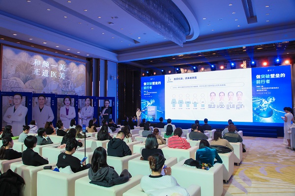 在医美行业同仁的共同见证下,会议迎来**,和颜一美品牌创始人张伍新先生、**整形美容协会副会长杨蓉娅教授、五大厂家领导以及颜选医生团队,共同完成启动仪式,官宣和颜一美问题肌肤临床科研示范基地正式成立,迈向问题肌肤新征程!