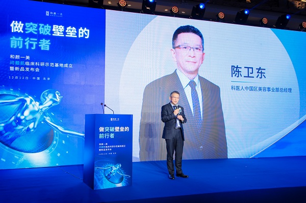 随后,厂家嘉宾科医人**区副总裁陈卫东先生、伊肤泉京西大区销售总监赵杰先生也对本次活动表达了祝贺,并表达了共同的目标,希望在日后的临床医疗中突破问题肌肤技术壁垒,寻找更佳联合**方案,造福于求美者,共同推动和颜一美问题肌肤临床应用,推进行业发展和规范化落地。