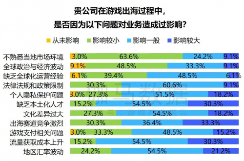 3. 出海收入已经连续两年下降,调查显示出海竞争激烈,国外增加了对本地游戏产业的扶持力度,对进口产品的监管也会越来越严格,包括准入条件、隐私保护、支付合规等,游戏出海将面临更大挑战。