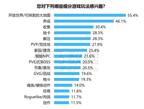 调查显示,用户对IP化产品的**因素不是因为IP,而是明显高于其他游戏的品质,如试听表现力和剧情、角色等。用户对开放世界RPG的要求也高于正在规划中产品的计划水平,比如4K大地图明年或许已经无法满足用户需求,用户需要8K或16K大地图以及更真实的细节标准。