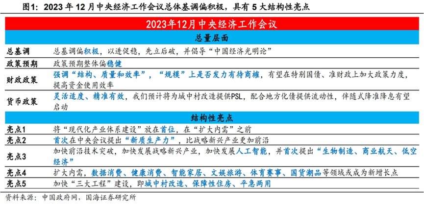从本次**经济工作会议的通稿来看,政策的总基调是“稳中求进、以进促稳、先立后破”,用“以进促稳、先立后破”替代了以往的“稳字当头”。这个提法跟12月8日的政治局会议一脉相承。