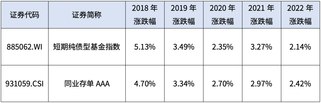过去五年,万得短债基金指数和同业存单**A指数都做到了年年正收益。(数据来自wind,2018/1/1-2022/12/31)