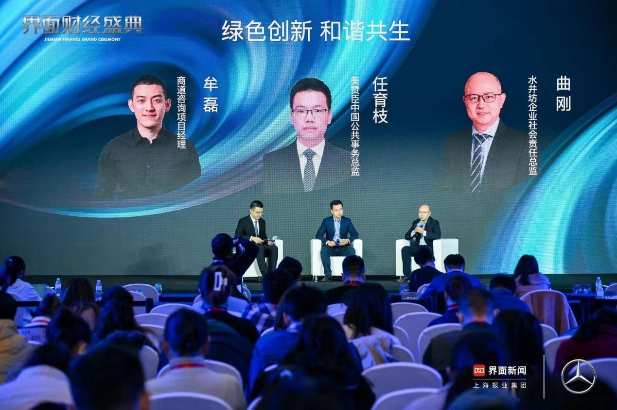 圆桌论坛三以《绿色创新 和谐共生》为题展开讨论。由商道咨询项目经理牟磊担任主持,美赞臣**公共事务总监任育枝、水井坊企业社会责任总监曲刚参与这一环节的讨论。