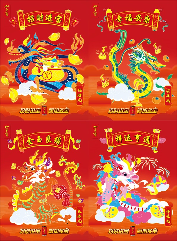 作为凉茶品类的开创者和凉茶行业领导品牌,加多宝一直以弘扬中华**传统文化为己任,不断探索传统文化的创新表达,为传统文化注入新的生命力。加多宝历时数月,重磅推出2024加多宝宝运龙罐。宝运龙罐以加多宝“招财进宝”、“多福多宝”等“宝文化”为精神内核,创新融合了数千年的龙文化及春节传统文化意象,由招财龙、安康龙、良缘龙及祥运龙四条形象、寓意各不相同的宝运龙构成,用生动的原创龙身形象及多元色彩、民俗符号演绎传统新年文化的宝贵资产,为广大消费者送上春节期间独一无二美好祝福与精神价值。