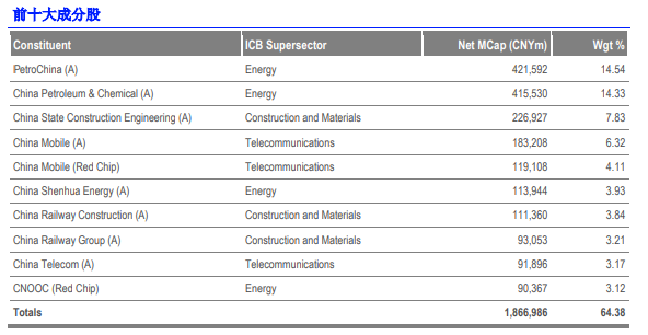 再看富时**国企开放共赢指数,虽然该指数的成分股有100只,但是前十大权重的占比非常高,超过了64%。其中,**石油、**石化的权重占比都超过了14%。