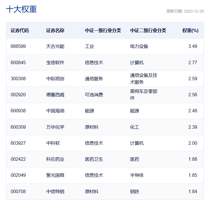 其次,中证国企一带一路指数的前十大权重股,单只个股的权重占比都比较低,这使得累计权重占比**23.84%。