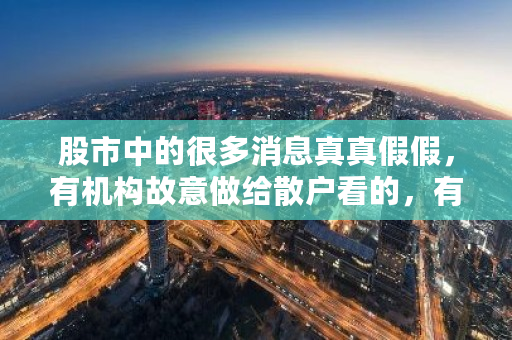 股市中的很多消息真真假假,有机构故意做给散户看的,有论坛上庄托故意忽悠人的,总而言之,那些消息可以相信而哪些消息不能够相信?股市论坛天涯论坛