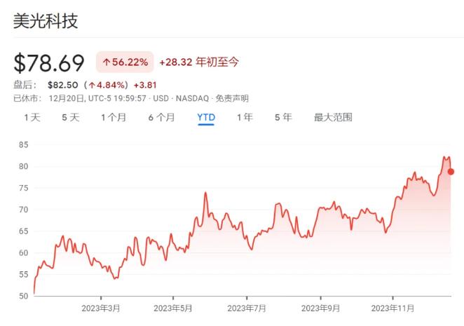美东时间12月20日,美光科技发布了截至11月30日的**财季业绩,总营收达到了47.3亿美元,同比增长16%,超出市场预期。在业绩公布后,美光科技盘后持续走强,一度增长4.84%,今年以来已累涨超56%,**在六个季度内实现收入增长。