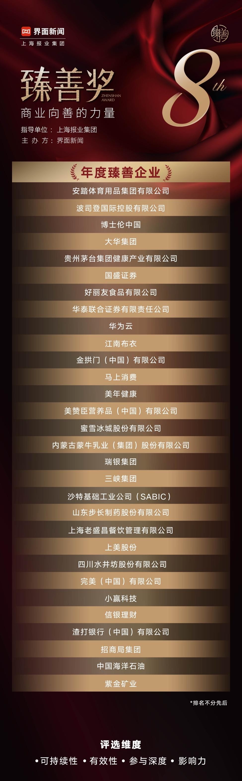 这其中,30家年度臻善企业分别来自消费、医疗、金融等行业,在多个领域用行动诠释着社会责任。