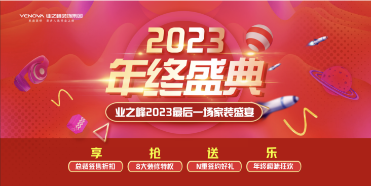 为感恩回馈客户,今年12月,业之峰装饰集团推出“2023**一场家装盛宴”活动,享总裁签售折扣,抢8大装修特权,送N重签约好礼,乐年终趣味狂欢,让客户享受实实在在的装修福利!
