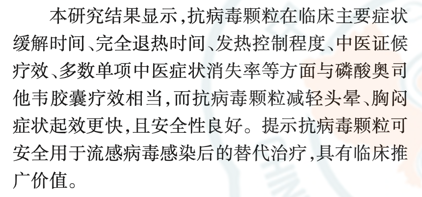 《抗病毒颗粒**流行性感冒有效性和安全性的多**随机对照研究》