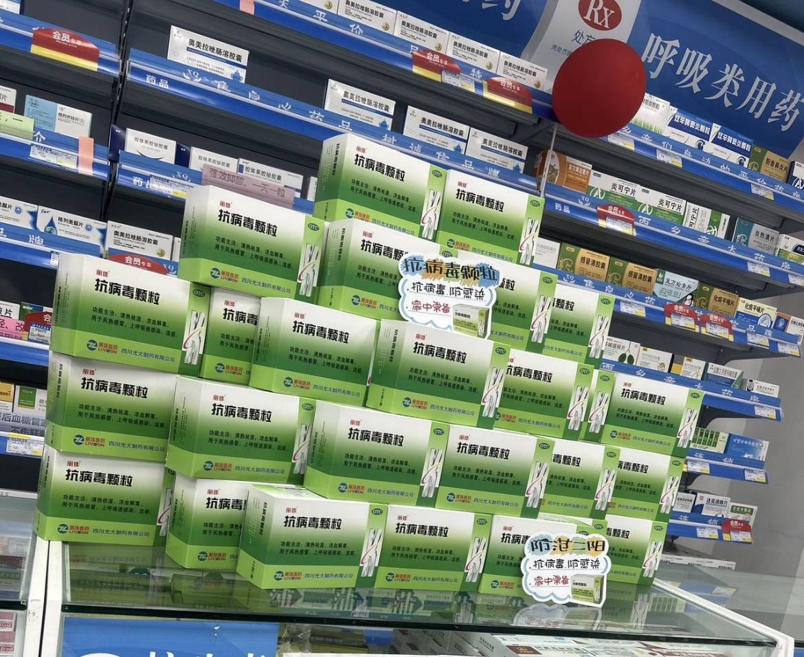 某地药店摆放在醒目位置的丽珠抗病毒颗粒