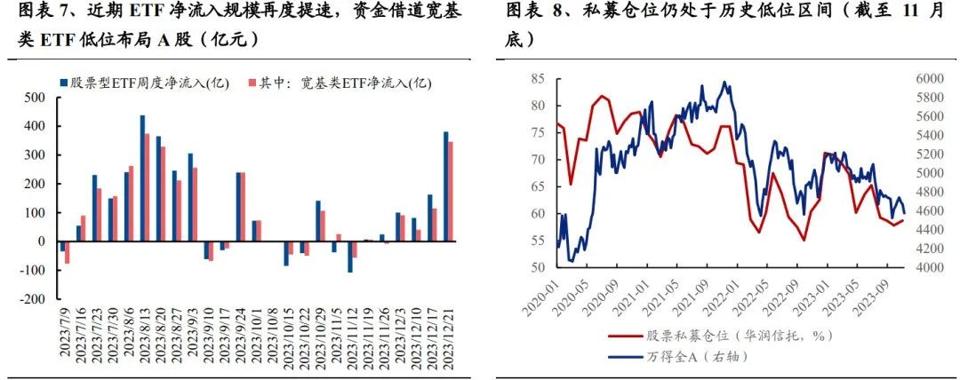 其次,资金面层面,12月以来,投资者借道股票型ETF低位布局A股的亿元再度迎来抬升,上周更是流入近400亿元,成为市场重要的托底资金。
