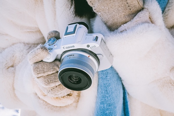 把相机作为拍照道具能更好衬托出模特文艺、清新的气质。尤其是像EOS R50小白兔这样高颜值又小巧的青春专微,作为女生的随身搭配再合适不过了。