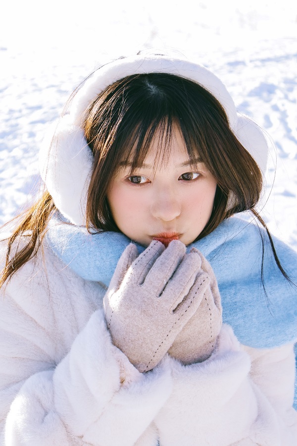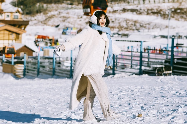 在雪天拍摄**选择毛衣或者大衣等较有质感的服装,另外穿戴帽子、围巾、手套等,是增加元气少女感的好配饰,也是增加保暖的好方法。同时,还可以把相机当作拍摄时的道具,更好的彰显个性或者突出画面文艺小清新的气息。
