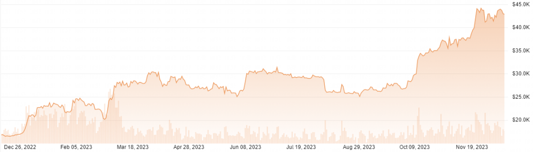 机构投资者入场是上涨主要推动力(全球多家资管巨头申请现货比特币ETF)。