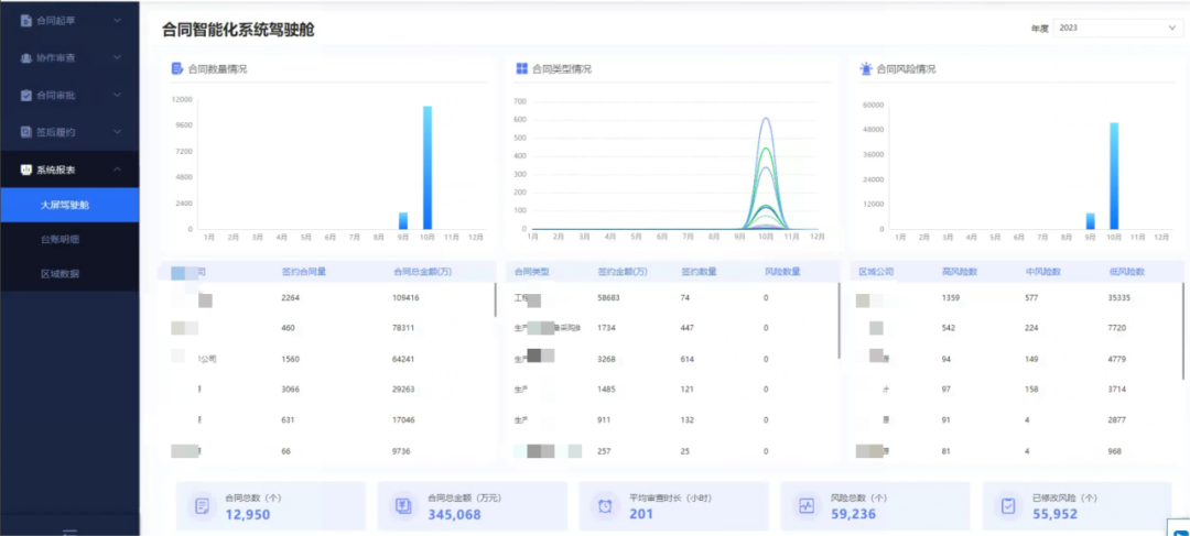合同风控合规全方位的数据可视化呈现和风险洞察。