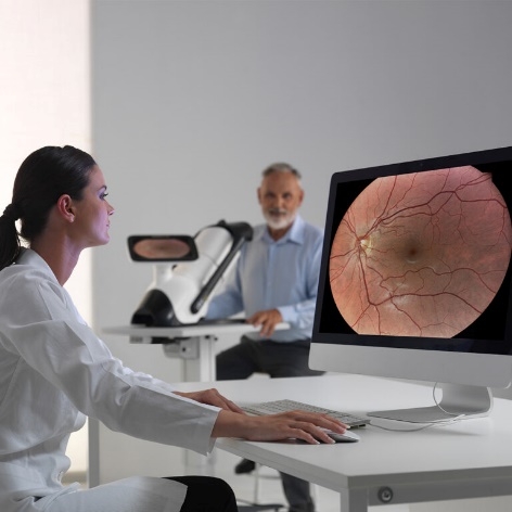 允许同一局域网(LAN)上的**计算机或笔记本电脑远程审查眼底图像,从而在多个审查站点上实现数据访问和详细分析。