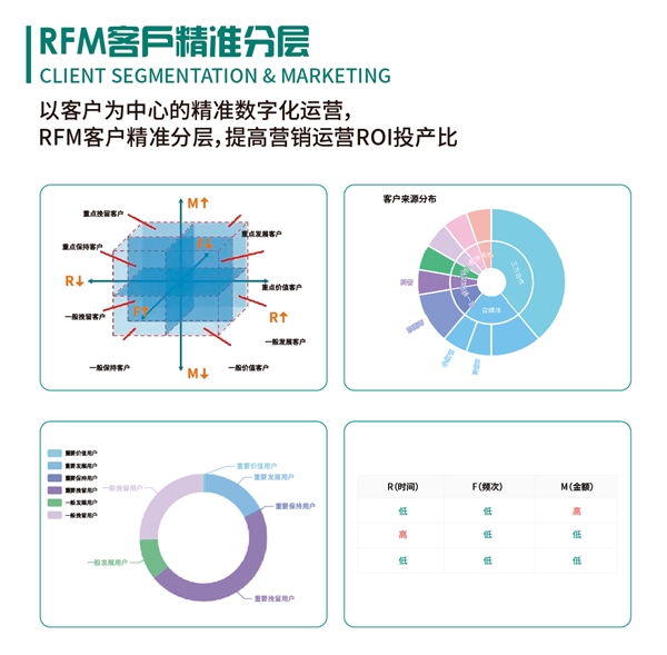 岚时云SaaS眼科平台拥有RFM分析模型等多种智能数字化工具对客户进行标签和360度用户画像,分析客户来源渠道、消费金额、消费项目、个人偏好、回访记录等多个维度,形成**度分析结果,对客户进行分层管理和精细化服务,特别是针对高净值客户提供有据可依的决策数据。通过科学精准的运营服务减少客户流失,拉升客户留存时间和长期价值产出。