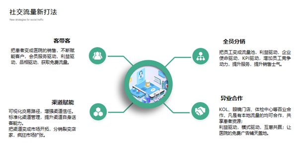 员工带客、异业合作、渠道带客的带客模式,也是基于信任关系的,完成“社交流量获客全覆盖。”