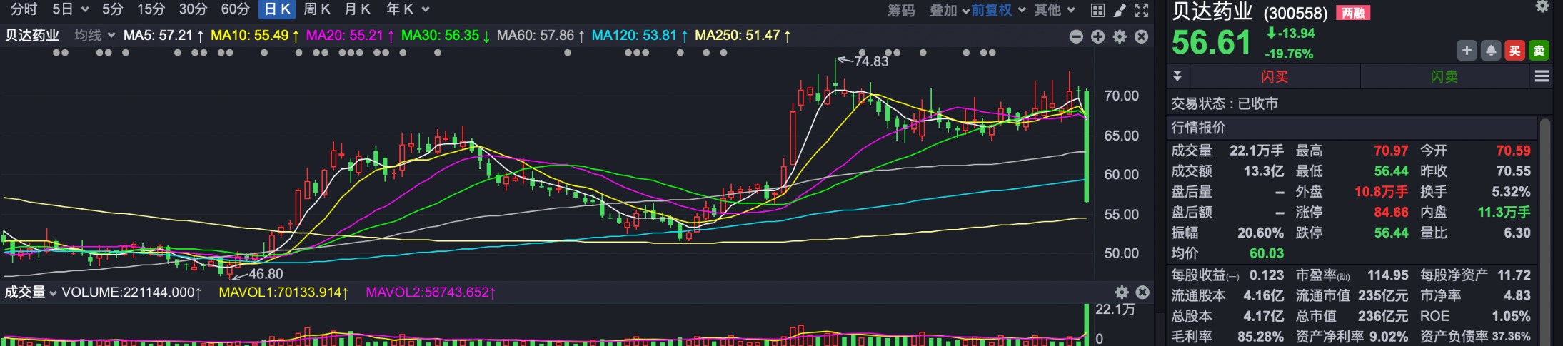 贝达药业突然大跌的原因,或与利空市场消息有关,但目前该消息尚未获得证实。