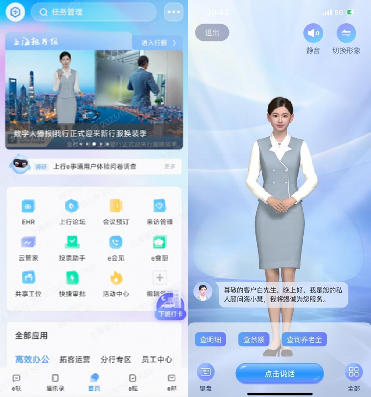 上海银行联手商汤“如影”开发的AI数字员工“海小智”和“海小慧”