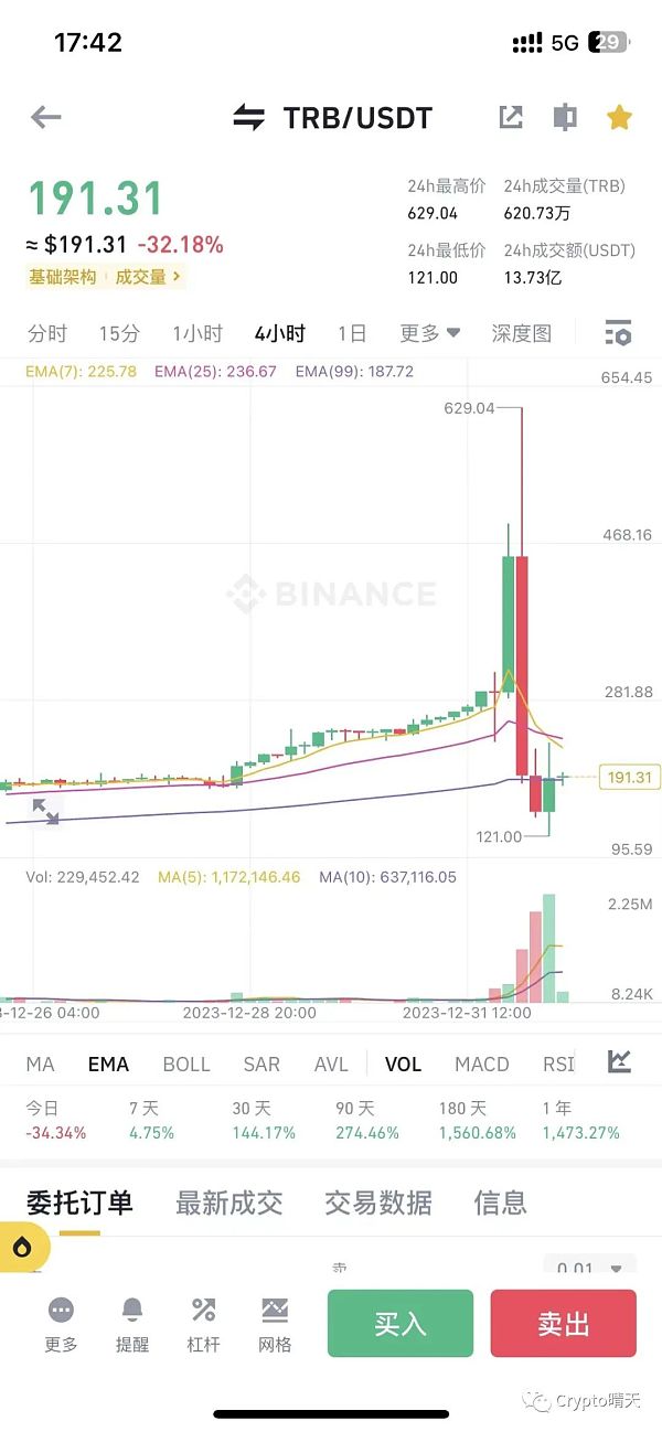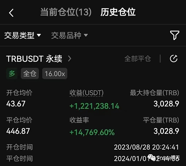 Crypto晴天,公众号:Crypto晴天Trb又开始作妖,多空双爆!如何在牛市利用滚仓拿住十倍币?