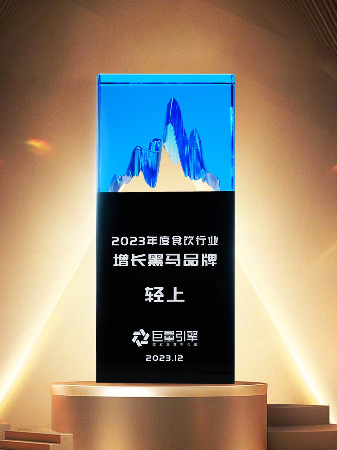 年终岁末,轻上再传喜讯!!在12月22日的巨量引擎大众消费食饮行业峰会上,轻上以在食品饮料赛道**的表现成功斩获2023年度食饮行业“年度增长黑马品牌”大奖。