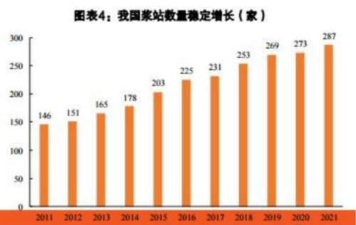 血制品是一种用于**及被动免疫的生物制品 ,其为源自人类血液或血浆的**产品 ,如人血白蛋白 、人免疫球蛋白 、人凝血因子等 ,一般通过健康人的血浆或特异免疫人的血浆分离 、提纯制成 。血浆是血制品生产最核心的原材料 ,采浆量决定了血液制品的产量 ,也决定了行业增速 。受到政策监管 、 民众观念等多重因素的限制 ,我国采浆量及血制品的增长并非易事 ,血制品依然具有资源属性 。**总采浆量在相当长一段时间内处于震荡状态 ,2014 年后出现一波持续的增长,2020年受疫情影响采浆出现下滑。2021年各地新建浆站审批放开 ,推动行业供给增加。