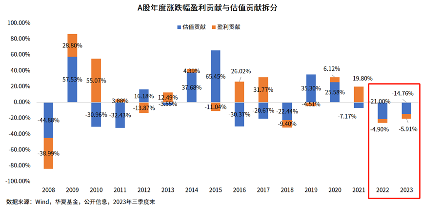挖掘基之前写过,2008年以来,A股在调整比较剧烈的年份都是经历了盈利和估值的“戴维斯双杀”,如2008和2018,但是这一过程很少超过1年。而2022-2023年是A股戴维斯双杀持续时间最长的时期,连续两年的戴维斯双杀是近15年间**的一次。