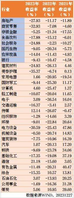 从行业角度,市场反弹,连续下跌的行业具有反弹潜力,跌幅大的比如新能源有**弹性,那么连续下跌三年的行业,也或许有机会出现持续性强的反弹,我们给大家统计了一下最近三年,连续下跌的行业,这里的食品饮料、医药、房地产、金融、农林牧渔等行业是否能在2024年有机会呢?