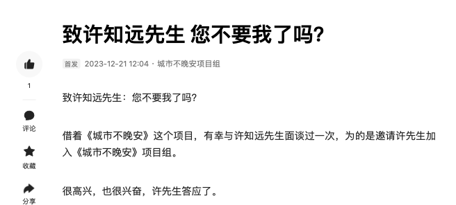 据@城市不晚安项目组称,许知远是《城市不晚安》项目组一直想合作的嘉宾,2020年7月14日下午,《城市不晚安》项目团队携节目脚本和许知远先生就节目合作当面沟通,并提供了当天会面的微信截图。《何不秉烛游》播出以后,城市不晚安项目组发现该节目播出,许知远作为**期嘉宾出境。