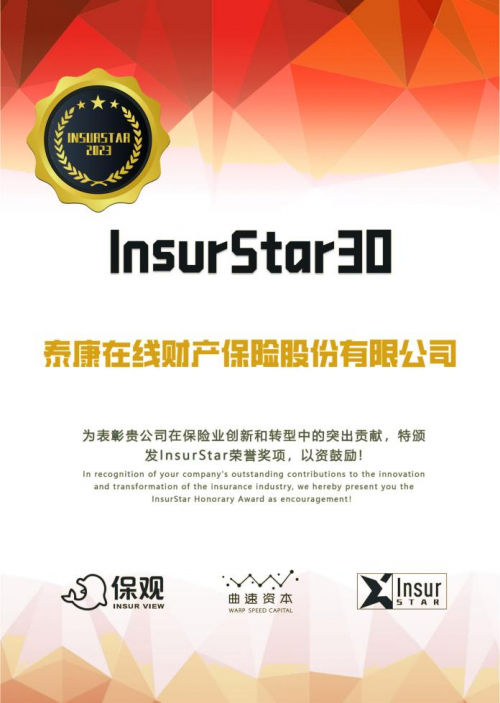 2023年InsurStar行业榜单公布 泰康在线一举斩获“InsurStar30”等两大奖项