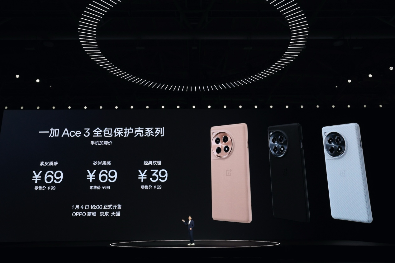 一加 Buds 3 耳机将于 1 月 4 日开启预售,1 月 8 日正式开售,售价 499 元,首销立减 50 元,搭配一加 Ace 3 购买优惠 100 元。一加 Ace 3 全包保护壳系列将于 1 月 4 日 16:00 正式开售,素皮质感全包保护壳售价 99 元,手机加购价 69 元;砂岩质感全包保护壳,售价 99 元,手机加购价 69 元;经典纹理全包保护壳,售价 69 元,手机加购价 39 元。