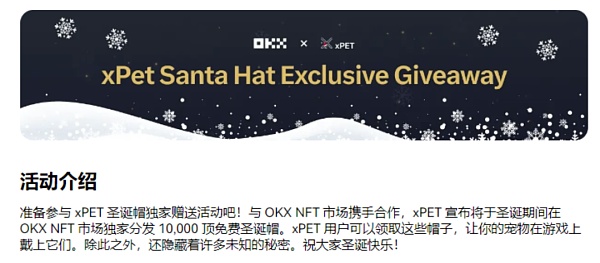 首先,这是项目**个NFT,和OKX共同合作的,购买以后可以给宠物带上,且描述说隐藏很多位置的秘密。而**中说冒险三层可能会针对符合标准的人开放,那么待着圣诞帽的宠物可能就是一个标准,按照现在的热度,应该很多人想参与这个项目,但是帽子又只有10000个,所以,你懂得。