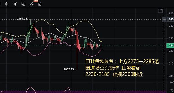 ETH短线参考:上方2275--2285范围进场空头操作 止盈看到2230-2185 止损2300附近