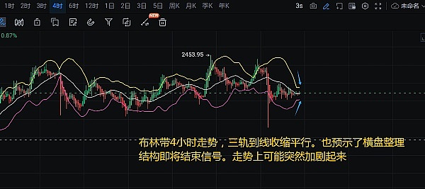 1.7以太坊日线布林轨道空间压缩横盘整理后的突破走势可能很快展开