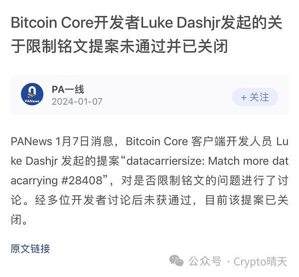 这样看来铭文基本上不会消失,大部分比特币开发者还是支持铭文继续存在!