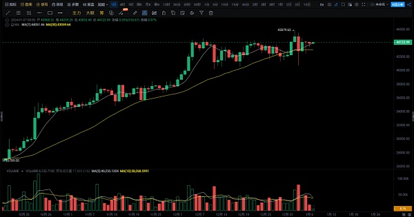 4,目前来看日线还在上涨趋势中,并不能认定45879就是24901开始的这波反弹的顶部,更不能说是15476开始的顶部,还需观察,如果还有高点,那么就要重新计算,但行情走到这里,的确是接近这波上涨的尾声了,大家更多的是要有风险意识。越往上,48500以上压力越大,大回调的概率也更大。