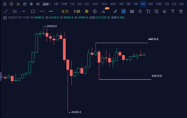 比特币四小时形成了一个新的震荡区,震荡区内空头量能一直在衰弱,说明空头力量不强,但是多头也没有怎么放量,虽然底部在抬高,但是高点也在**,这是很明显的震荡行情。目前BTC这个位置不适合做短线,不上不下的位置很尴尬,但是其他的很多币种都已经止跌了,都有机会进场。