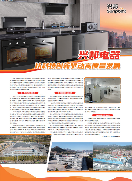 以科技为动力,以需求为导向的兴邦电器,在2022年收获了人民日报在整一版面以《兴邦电器——以科技驱动高质量发展》为题的报道,让更多消费者从知晓兴邦,到认可兴邦。