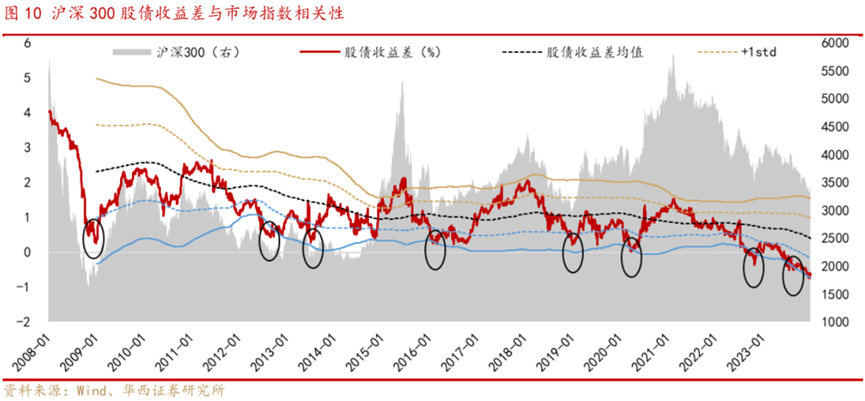 股债收益差(10年期国债收益率-沪深300近12个月股息率)下行至-0.75%,已下破近三年均值-2倍标准差,低于历次市场大底。