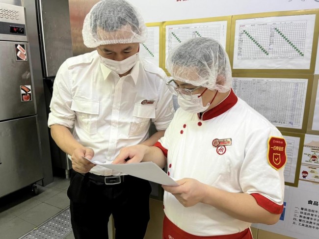 增强员工对食品安全的重视度是工作**步。为此,海底捞于2023年1月启动了新员工“双安全”认证培训课程通道,将食安培训与人资体系打通,以此增强来增强新入职员工对于食品安全知识的重视程度和学习的积极性。除此之外,海底捞对于每一位新入职的员工,采取“教三练四”的培训方法,一对一带训确保新员工真正理解食品安全关键点,掌握岗位食品安全的相关知识。